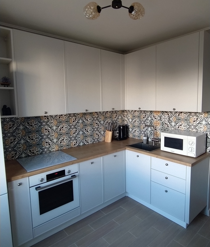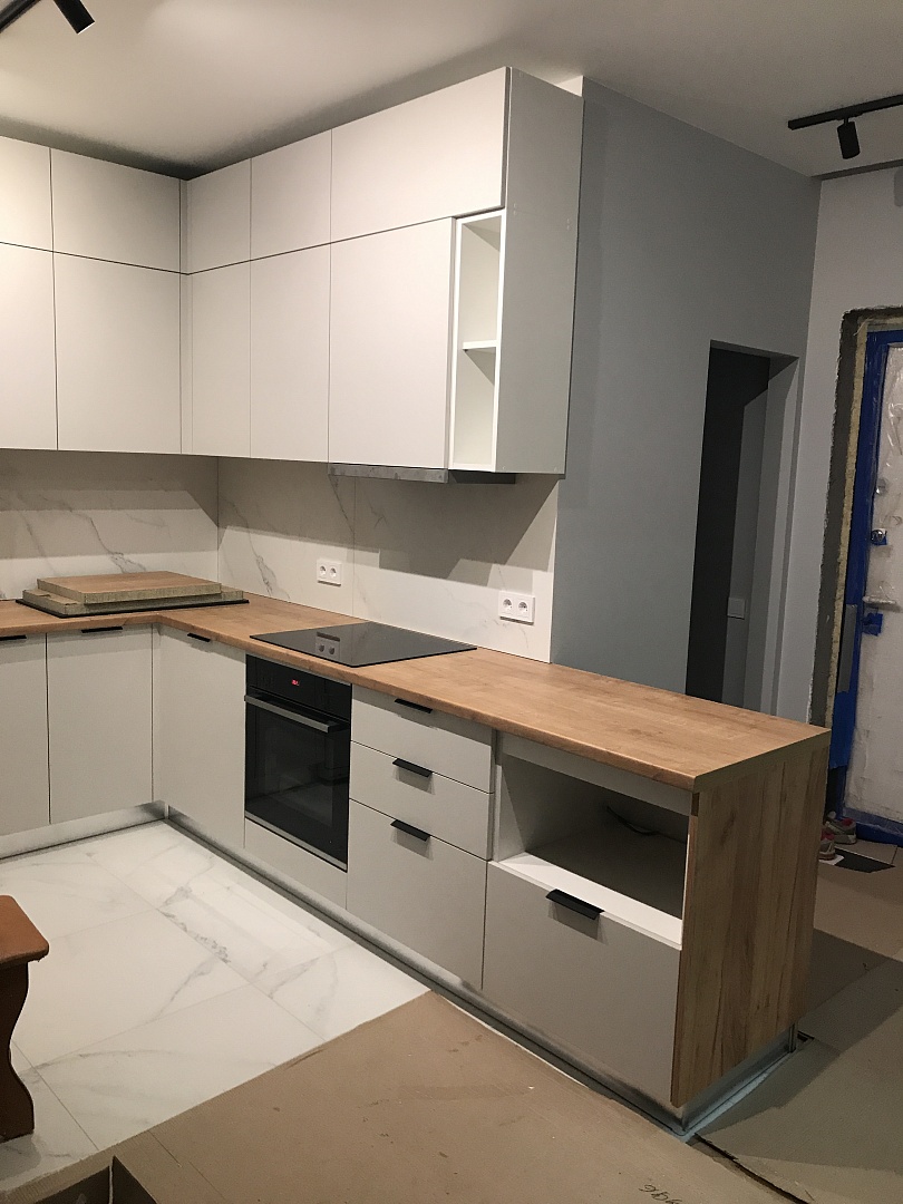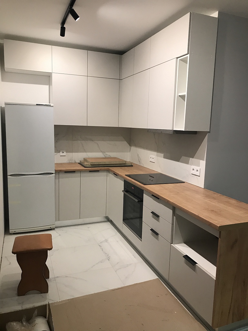 Кухня выполнена в срок, сборка прошла отлично! Готовка на такой кухне - одно удовольствие! Так же заказывали всю необходимую технику. Ещё получили хорошую скидку, что очень приятно.
