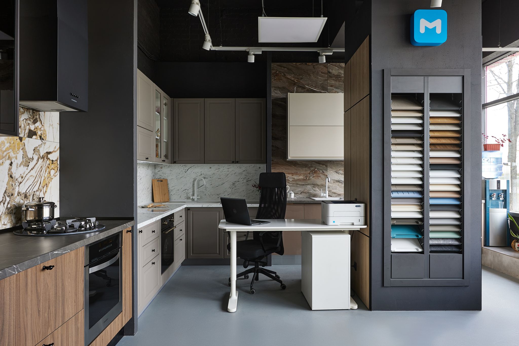 Дизайнер поможет выбрать кухню, бесплатно разработает ее проект в 3D-конструкторе и рассчитает стоимость.